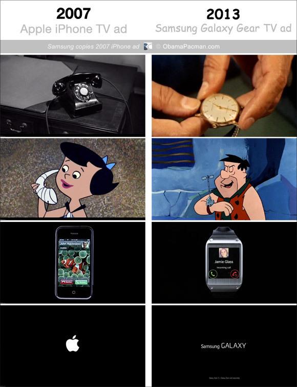По мнению журналистов The Week, рекламный ролик Galaxy Gear удивительным образом копирует первую коммерческую рекламу iPhone образца 2007 года.