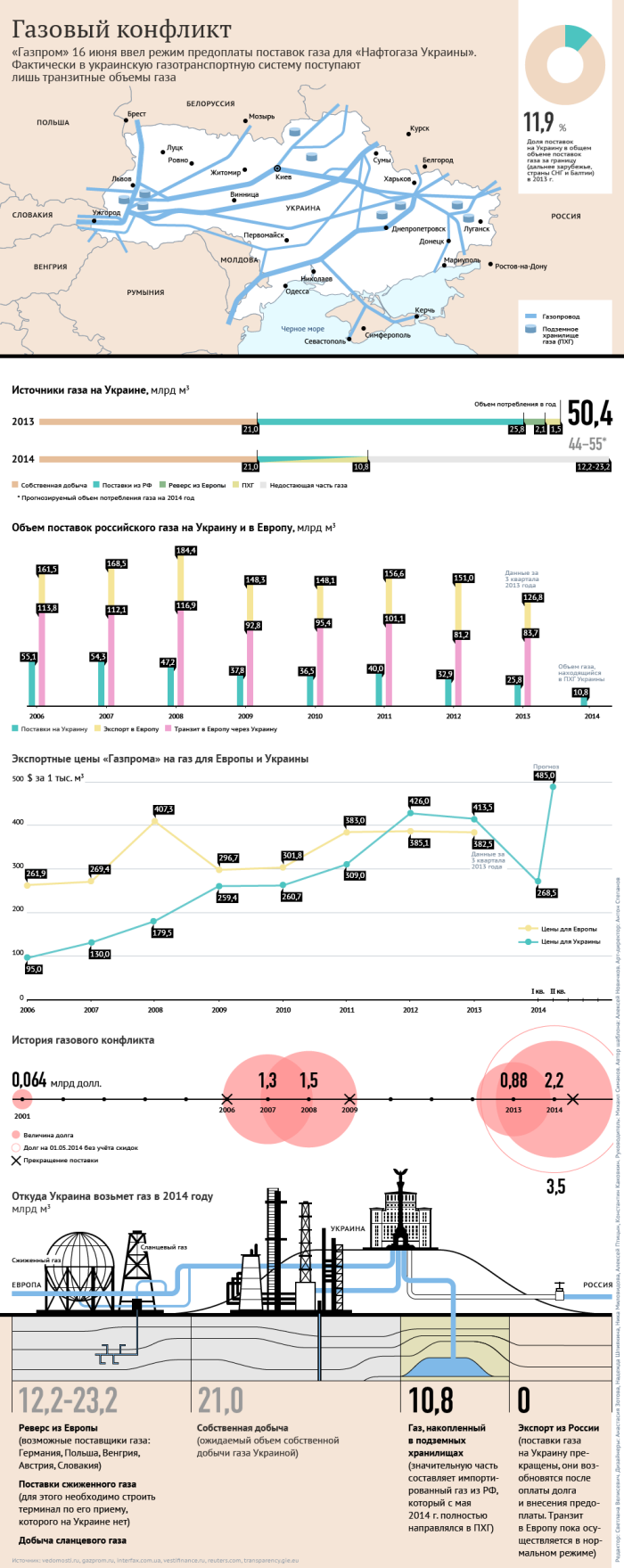 После долгих и безрезультатных переговоров российский 'Газпром' 16 июня перевел украинский 'Нафтогаз' на предоплату, и теперь в украинскую газотранспортную систему поступают только транзитные объемы, предназначенные для Европы. Остаются открытыми вопросы, когда Киев заплатит долг за газ и когда поставки могут возобновиться.