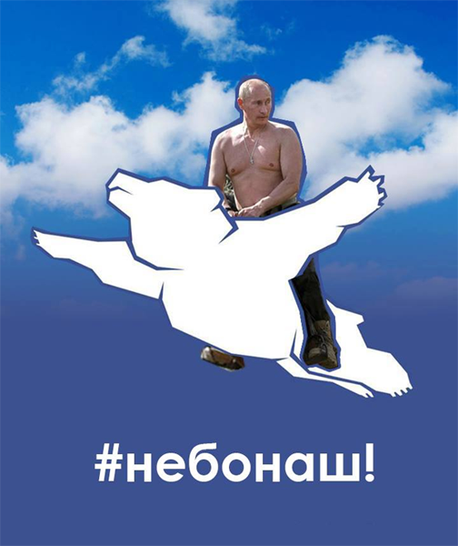 «Для друзей нездешних. Официальный лого. Поплачьте над нами» - написал Олег на своей странице в Facebook. Его пост уже собрал более двухсот лайков и еще больше «шееров». На картинке нарисован летящий на синем фоне медведь.