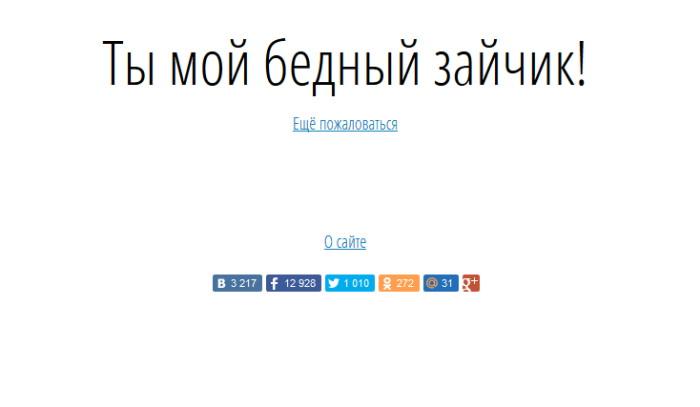 На сайте complain.breqwas.net нет ничего лишнего – только одно текстовое окно, куда нужно ввести жалобу, а затем нажать кнопку «пожаловаться». В ответ появится фраза, выражающая ободрение или сочувствие, например, «Ты мой бедный зайчик!».
