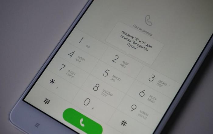 Стандартное приложение для звонков предлагает найти Владимира Путина, нажав клавишу «2» (АБВГ в кириллице) или «5» (МНОП в кириллице). Предлагаем вашему вниманию несколько снимков, на которых хорошо видна новая функциональность Xiaomi: