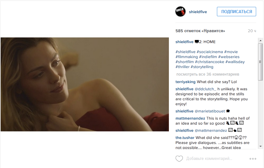 Каждая серия сопровождается фотографией, которая является неотъемлемой частью истории. Контент подобного рода уже окрестили social cinema («социальным кино»).