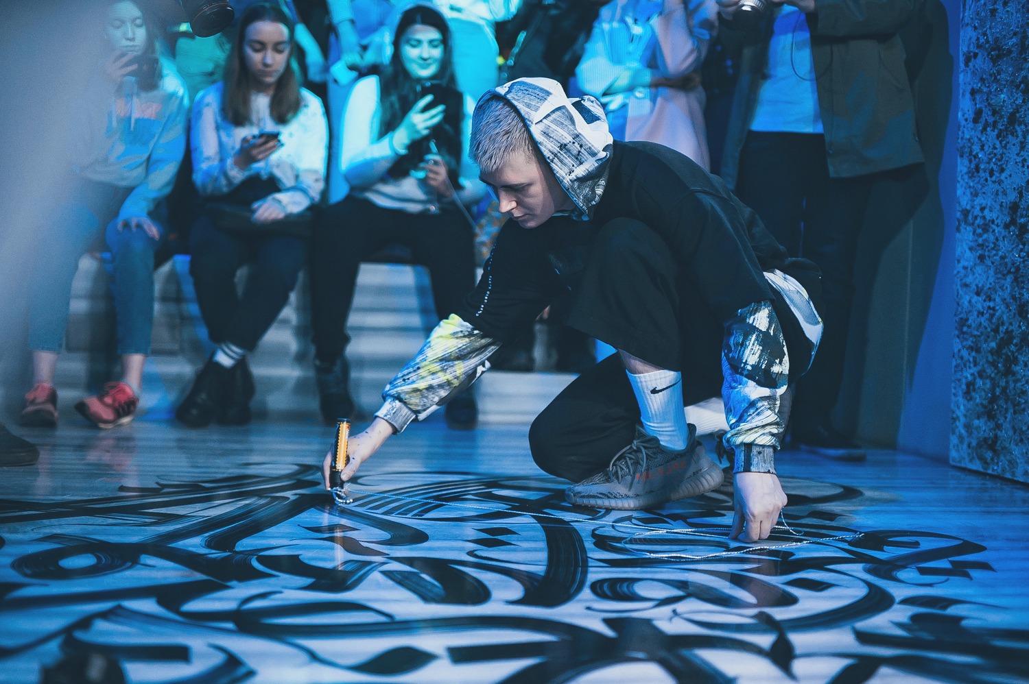 В имиджевой галерее Hyundai на Новом Арбате при поддержке Музея русского импрессионизма открылась выставка Покраса Лампаса (Pokras Lampas) «Line. Fusion. Future. Линия. Синтез. Будущее». Проект представляет собой размышления художника на тему будущего, интеграции культур и зарождения новых лингвистических систем. На презентации 10 апреля в режиме реального времени Покрас Лампас создал каллиграфическую роспись на подиуме.