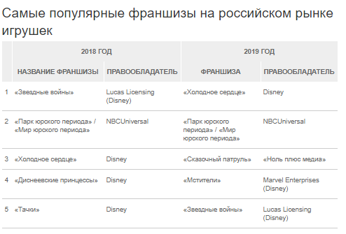 Рейтинг NPD Group был составлен по выручке от продаж игрушек по лицензиям студий.