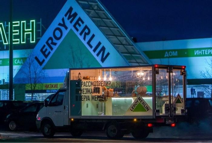 Бренд Leroy Merlin запустил в столице нестандартную рекламную кампанию — передвижная реклама расположена в прозрачных кузовах грузовиков. На бортах кузовов расположен слоган «Не рассмотрели? Приезжайте в Леруа Мерлен!». Внутри находятся настоящие кухни в четырех стилистических вариациях, сообщает Retailer со ссылкой на пресс-службу Leroy Merlin.