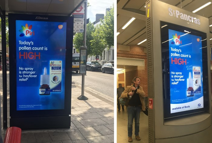 Фармкомпания GSK запустила автоматизированную наружную рекламу для противоаллергенного препарата Pirinase, пишет The Drum.
