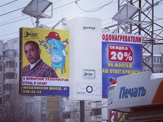 По данным ФАС, в рекламе водонагревателей компании ООО 'Элвес-А' 'присутствуют изображения человека с темным цветом кожи, рядом с которым расположена надпись 'А немытым трубочистам стыд и срам!'. По информации портала 'Ведомости. Урал', на баннере был изображен Барак Обама.
