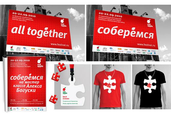 Генеральный директор дизайн студии ЛИН-АРТ Александр Дворянкин комментирует: «Работу над созданием фирменного стиля 20 Московского Международного Фестиваля Рекламы и Маркетинга Red Apple мы начали с поиска подходящей метафоры, которая помогла бы оригинально решить проблему объективного отражения дел на маркетингово-рекламном пространстве и сбору всех ведущих специалистов в области рекламы, маркетинга, дизайна, PR и брэндинга на фестивале. И такая метафора нашлась.«Пазл» как нельзя лучше отражает суть концепции и иллюстрирует связь между частью и целым. Каждая деталь мозаики — это участник рынка рекламы и маркетинга. И от того, соберутся ли в итоге все «детали» вместе, зависит насколько будет объективной сложившаяся картина Фестиваля».