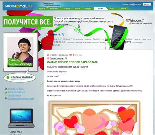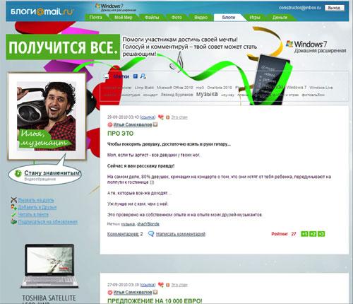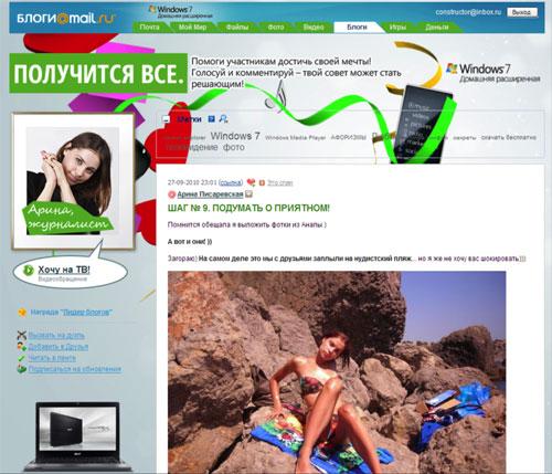 Для проекта на конкурсной основе были отобраны реальные представители целевой аудитории, приславшие свои анкеты. Используя удобные приложения и функции нового Windows 7, молодые люди делятся своими мыслями и успехами в блогах социальной сети «Мой Мир», где выкладывают также свои фото и видео.