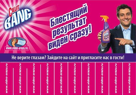 В каждом из роликов хозяйка выбирала в своей квартире наиболее трудные для уборки загрязнения, испытывала на них Cillit Bang, и делилась первыми впечатлениями и эмоциями с Михаилом Полицеймако, ставшим лицом бренда в 2011г.
