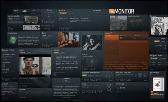 «Монитор» - сервис, транслирующий самый интересный контент со всего Интернета на одну веб-страницу в виде анимированных блоков и виджетов.