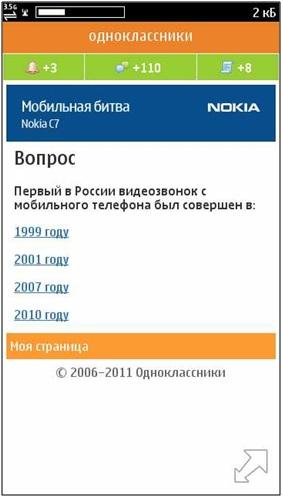 Инновационный проект, реализованный командой Carat Interactive и объединивший активности в стандартной и мобильной версиях социальной сети «Одноклассники», собрал более 1,5 миллиона участников в борьбе за главный приз «Битвы» - смартфон Nokia C7.