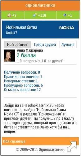 «”Мобильная битва Nokia C7” – уже второй проект в мобильной версии «Одноклассников» для компании Nokia, и его результаты превзошли результаты «Мобильного чемпионата Nokia C3» - первой подобной кампании, которая проводилась в ноябре 2010. Это доказывает, что инновационные кампании в мобильном интернете действительно эффективны. Кроме того, они позволяют вовлекать в коммуникацию пользователей смартфонов, которые являются для Nokia важной целевой аудиторией», - комментирует Александр Захаров, генеральный директор Carat Interactive.
