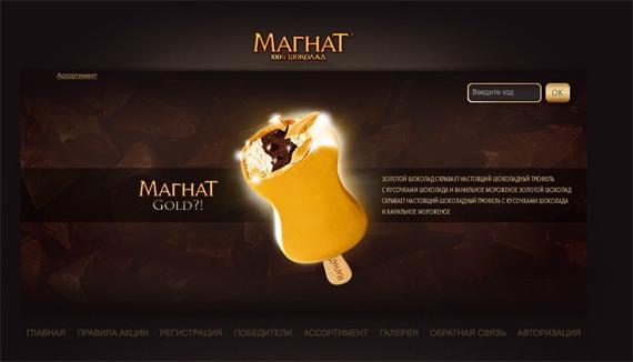 Сайт для Магнат Gold, созданный в рамках кампании, не просто рассказывает о продукте, он предлагает пользователю интригующую возможность «сняться» в тизере к вымышленному фильму «Дороже золота» от создателя «Люди икс» и «Возвращение Супермена» Брайана Сингера. Кроме того, на сайте есть промо раздел, в котором каждый желающий может выиграть iPhone, отыскав правильный промокод на палочке мороженого Магнат Gold. Промо раздел содержит в себе: информацию о различных мероприятиях от «Инмарко», фотогаллерею, информацию об остальных вкусах Магнат. http://promo.magnat-promo.ru/.