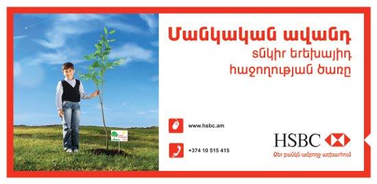 По мнению команды Prime Commercial аналогия была очевидна: «Посаженное дерево вырастает, дает плоды и озеленяет местность, в то время как дети подрастают, добиваются успехов и приносят пользу своей стране и одновременно растет их вклад!» Эта мысль легла в основу рекламной кампании, оповещающей о новой услуге банка HSBC Армения. Основной целевой аудиторией стали деловые люди с заработком выше среднего, сравнительно недавно ставшие родителями. Он-лайн реклама была размещена на различных сайтах и социальных сетях. Из радиостанций были выбраны несколько местных развлекательных каналов, которые в основном слушают за рулем. В расчете на ту же деловую аудиторию было осуществлено размещение носителей наружной рекламы. А вот телевизионная реклама была адресована домохозяйкам.