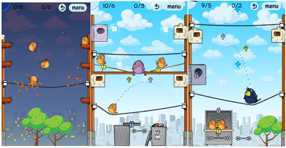'Удачливые птички' - это несколько видов персонажей, каждый из которых обладает своим характером, манерой поведения, реакцией на действия игрока, наконец, весом, что немаловажно для выполнения миссии игры. Миссия состоит в том, чтобы переместить всех птичек, беспорядочно тусующихся на проводах, в их домики. Естественно, преодолевая препятствия, собирая ключи и бонусы, отпирая замки и разгадывая логические шарады, уворачиваясь от опасностей и уловок, способных 'погубить' пернатого героя.