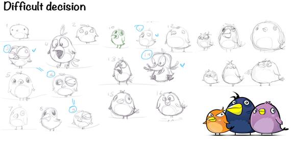 С августа по сентябрь 2011 года по просьбе Articul Media один из популярных сайтов для иллюстраторов организовал конкурс, участникам которого нужно было предложить трех оригинальных персонажей для новой игры. Необходимо было понять какими видит новых птичек сообщество. После этого Articul Media обратилось к профессионалам. Создание птичек доверили агентству Bear&Mary.