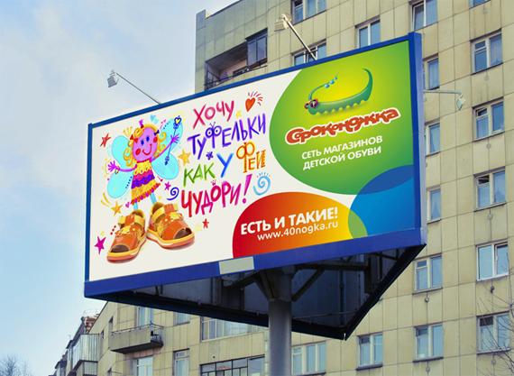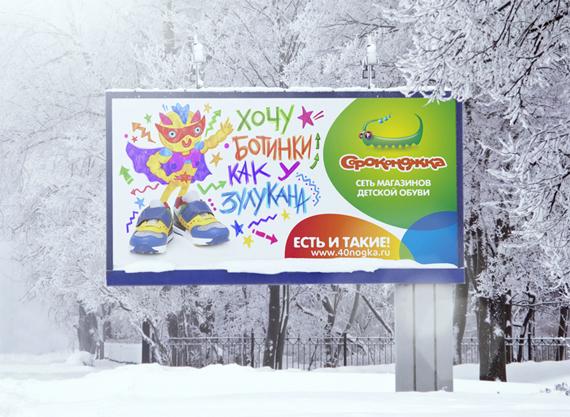 Трудно понять, зато легко найти. Такова идея рекламной кампании новой сети магазинов детской обуви «Сороконожка», разработанной РА «Восход»