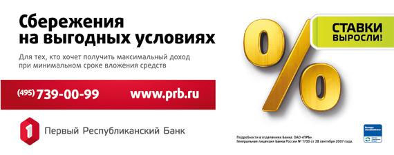 Первого апреля агентство Total View запустило первый этап рекламной кампании Первого Республиканского Банка под слоганом «Сбережения на выгодных условиях» в Москве и семи российских регионах