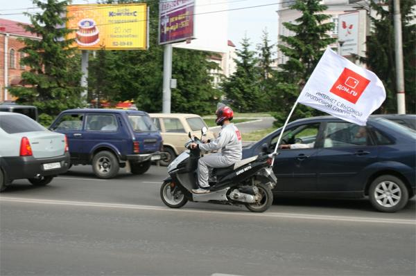 «Жителям крупных городов отлично известна проблема автомобильных пробок. Огромное количество времени тратит любой, кто решит воспользоваться личным транспортом в час пик, - рассказывает генеральный директор агентства TWIGA Touch Михаил Елагин. - Также себя чувствует пользователь медленного интернета, который очень долго открывает страницы или скачивает файлы. Акцией «Антипробки» мы хотим показать, что, с интернетом от «Дом.ru» Вы будете получать нужную информацию так же легко и быстро, как мопедист достигает места назначения».