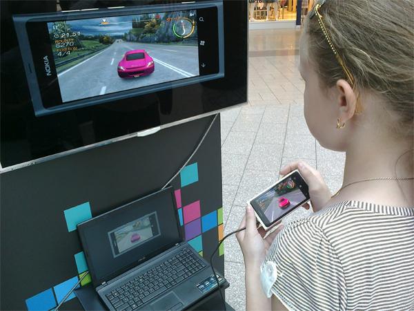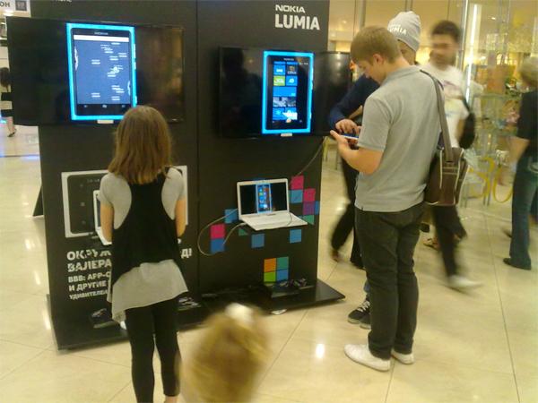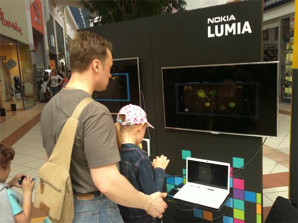 Посетители крупных торговых центров в Москве, Санкт-Петербурге и еще 4 городах-миллионниках смогли по-новому посмотреть на Nokia Lumia как на полноценную игровую платформу. В специальной промо-зоне бренда были размещены 2 большие плазмы, подключенные к телефонам, а также инсталляции с визуальными элементами наиболее известных мобильных игр.