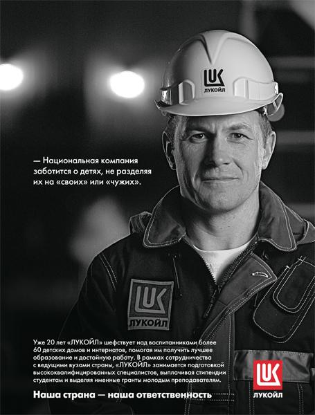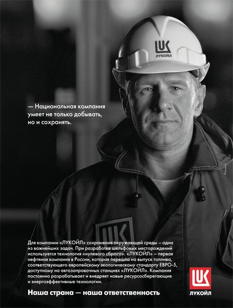 Современный узнаваемый стиль коммуникации «ЛУКОЙЛ» на сей раз отличается от прошлых кампаний по сути сообщения. Предыдущие рекламные кампании «ЛУКОЙЛ» были направлены на продвижение конечных продуктов – топлива, АЗС, масел. В центре нынешней кампании – тема социальной ответственности.