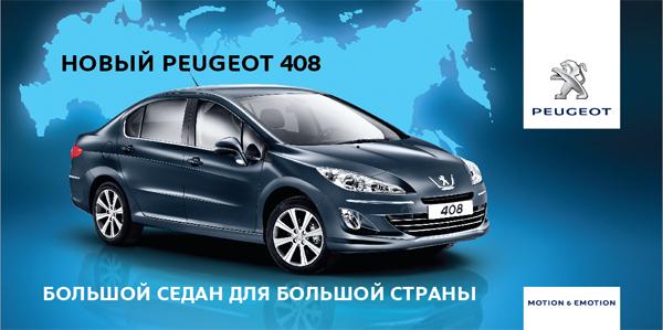 Рекламная кампания «Большой седан для большой страны» для нового Peugeot 408 была разработана московским креативным агентством Euro RSCG Russia – в ее рамках был написан сценарий телевизионного ролика. Главные роли были доверены известным на всю страну отцу и сыну – Олегу и Родиону Газмановым. Сюжет истории прост: сын встречает отца в аэропорту и затем везёт его в загородный дом на своем новом автомобиле. Отец сначала сомневается в достоинствах авто, а в конце уже просто восхищается выбором сына.