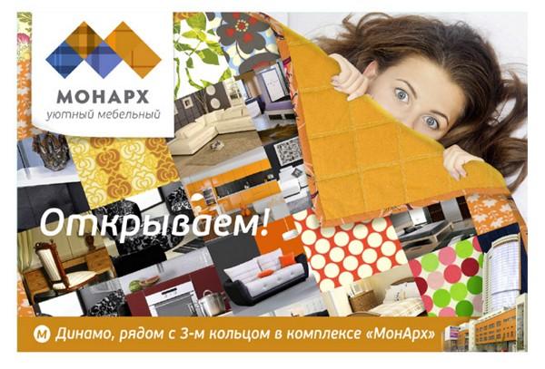 «Монарх» против обыкновения крупных мебельных магазинов расположен не за МКАДом, а совсем рядом с центром Москвы, его образ опирается на концепцию уютного мебельного центра, предоставляющего богатый выбор мебели, техники и товаров для дома. Колоритный фирменный стиль из лоскутков символизирует богатое разнообразие, а теплые домашние мотивы позволят посетителям чувствовать себя непринужденно, подбирая мебель и товары для домашнего интерьера.