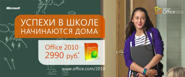 «Успехи в школе начинаются дома» - слоган общероссийской рекламной кампании Microsoft Office, приуроченной к началу нового учебного года. Основная задача кампании – стимулировать продажи Office 2010 с помощью коммуникации ценового предложения родителям школьников. Основные медиа - наружная реклама, радио и интернет