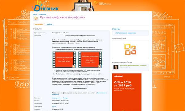 Совместно с единой образовательной сетью Дневник.ру был разработан и реализован творческий конкурс «Лучшее цифровое портфолио», принять участие в котором могли ученики школ, зарегистрированных в сети Дневник.ру - это более 22-х тысяч школ и около трех миллионов учеников.