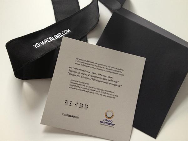 Креативным директорам ведущих рекламных агентств и главным редакторам крупнейших СМИ, людям, которые умеют видеть в обычных вещах нечто большее и генерировать идеи, были отправлены именные конверты. В них — повязка на глаза с просьбой надеть ее, представить себя слепым и попробовать сделать элементарные вещи — налить чай, позвонить близким или выйти на улицу.