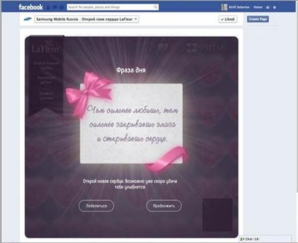 Для участия пользователь должен установить приложение «Открой свое сердце La’Fleur» в соцсети Facebook или Вконтакте, которое выглядит как огромная стена сердец-валентинок. Каждый день участник может открыть 1 сердце из 1 000 000 и выиграть один из смартфонов или продукцию L’Occitane.