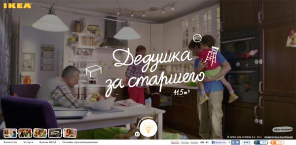 Проект позволяет не только детально ознакомиться с решениями ИКЕА, но и понаблюдать за пятью историями, разворачивающимися на кухнях. На интерьеры можно посмотреть глазами каждого из персонажей – трехлетнего ребенка или его мамы, влюбленной пары, кошки Кисы и даже обычной мухи! Помимо вдохновляющих идей, посетители сайта могут получить подробную информацию о решениях, использованных на кухнях, а затем проверить наличие и стоимость понравившихся предметов в магазине.