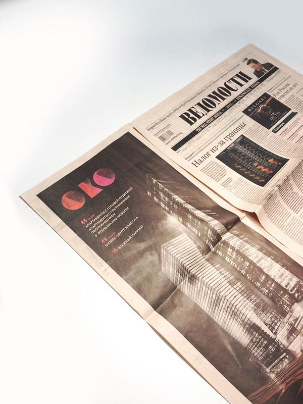 Реклама будущих башен «ОКО» уже вышла в Коммерсанте, Ведомостях, Российской Газете, журнале Interview, на радио Бизнес FM и др.