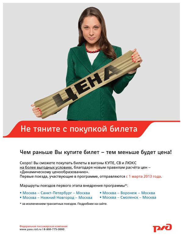 Основная цель – проинформировать широкую аудиторию о нововведениях в ценовой политике транспортной компании. Суть ее заключается в разнице стоимости билета в зависимости от даты покупки. То есть, чем раньше пассажир приобретает билет, тем выгоднее ему обходится поездка.