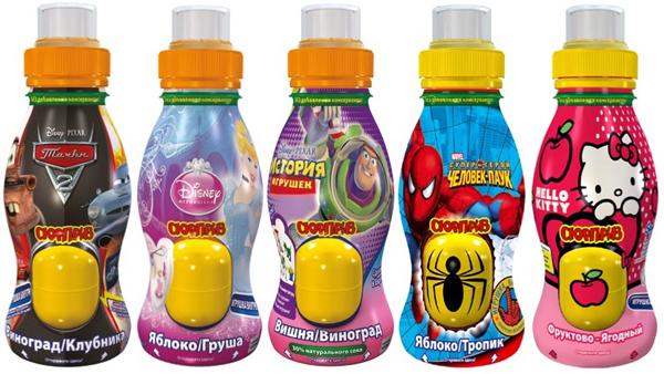 Благодаря яркому и необычному дизайну бутылки в комплекте с игрушкой, сокосодержащие витаминизированные напитки компании Surprise Drinks с каждым годом набирают популярность во всем мире. С прошлого года напитки «Сюрприз» начали производиться и в России.