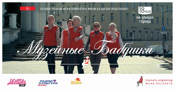 Основная часть кампании развернется в самом сердце Москвы. Врамках московской «Ночи музеев» 18 мая музей архитектуры им. А.В. Щусевапревратит центр города в музейное пространство, а помогут ему в этом музейныебабушки, образы которых так хорошо знакомы посетителям российских музеев.
