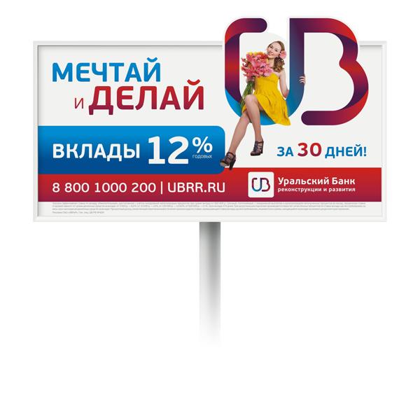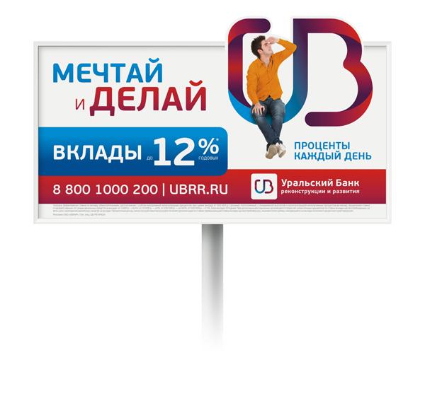 Рекламное агентство Bradberry (Екатеринбург) разработало генеральную визуальную концепцию для крупнейшего на Урале банка - Уральского банка реконструкции и развития (УБРиР). Реклама была запущена весной этого года в рамках масштабной кампании «Мечтай и делай», и анонсировала выход на рынок новых банковских продуктов