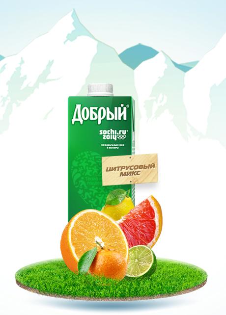 В преддверии XXII Олимпийских Зимних Игр, популярный бренд «Добрый», представляющий официальные соки и нектары Сочи 2014, создал уникальный новый вкус, запуском которого бренд выражает нашу общую теплую поддержку Зимней Олимпиады