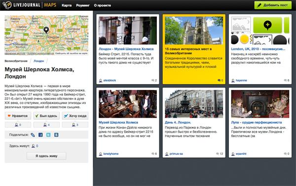На карту LiveJournal Maps можно добавлять не только собственные отчеты о путешествиях, но и любые материалы из ЖЖ, в которых содержится полезная информация о городах и странах. Сама процедура добавления точек проста и интуитивно понятна: каждая точка проходит обязательную премодерацию. Если точка уже существует, к ней можно просто добавить новую запись о данном месте.