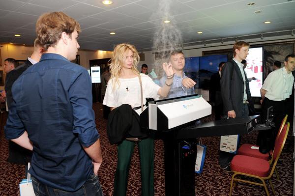 Прозрачный экран Displair из воды и воздуха привлек больше внимания, чем все мультимедийные технологии в зале. Wow-эффект технологии дает полное право ее создателям говорить о том, что со временем экран займет свою нишу в индустрии Digital out-of home.
