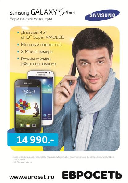 «Евросеть» запускает рекламную кампанию Samsung GALAXY S4 mini с участием Максима Виторгана