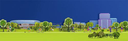 Основным сюжетом кампании стала панорама проекта, которая состоит из вырезанных вручную картонных деревьев, зданий и фигур людей — прототипов жителей района 'Динамо', и макетов объектов, которые должны вскоре появиться на этой территории.