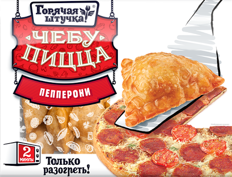 «Чебупицца» - свежий взгляд на традиционную замороженную пиццу в формате быстрого перекуса дома или в офисе: маленькие закрытые кусочки печеной пиццы с пикантной начинкой упакованы в специальный лоток с возможностью разогрева в СВЧ. Достаточно всего двух минут в микроволновке – и вкуснейшая «Чебупицца» готова. Любители классической пиццы с тонкими ломтиками салями и томатами оценят вкус «Чебупицца пепперони», а поклонникам более нежной мясной начинки и маринованных огурчиков придется по душе «Чебупицца курочка по-итальянски».