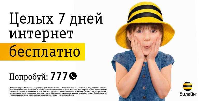 В рамках новой акции «Билайн» предлагает клиентам бесплатно попробовать мобильный интернет и оценить его преимущества. Абоненты «Билайн» могут бесплатно пользоваться мобильным интернетом в течение целой недели.