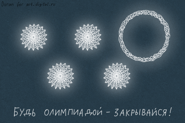 Специально для конкурса сетевой иллюстратор Duran ежедневно придумывает новую картинку для вдохновления участников. Так на свет уже появилась следующая серия: «Будь Шерлоком – догадайся!», «Будь Терминатором – возвращайся!», «Будь изотопом – распадайся!», «Будь зимой – закругляйся!», «Будь Кубиком Рубика – собирайся!», «Будь Олимпиадой – закрывайся!», «Будь нападающим – защищайся!».