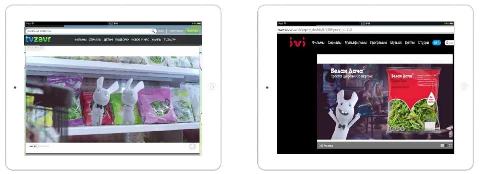 1) Видео-ролики Салаты Белая Дача с хронометражем 30 и 15 секунд, на площадках IMHO VI Video Network (IVI, TVZavr, 1TV и пр.)