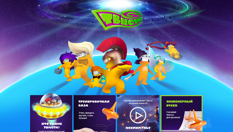 На сайте доступны тренинги по трюкам с «крутиками», различные трассы, которые можно проходить с их помощью и мультипликационные сюжеты про героев. «Крутики» - это призы, которые клиенты сети могут получить в сети гипермаркетов «Карусель», совершая покупки с 11 марта по 7 мая. Именно за ними и охотятся герои команды ТВИСТИ. На протяжении акции клиенты торговой сети могут собрать семь различных игровых наборов, включающих в себя буклет, карточку одного из героев команды ТВИСТИ и сам «крутик». Чем больше наборов будет собрано, тем больше шансов помочь забавным и смелым героям спасти их родную планету ТВИ.