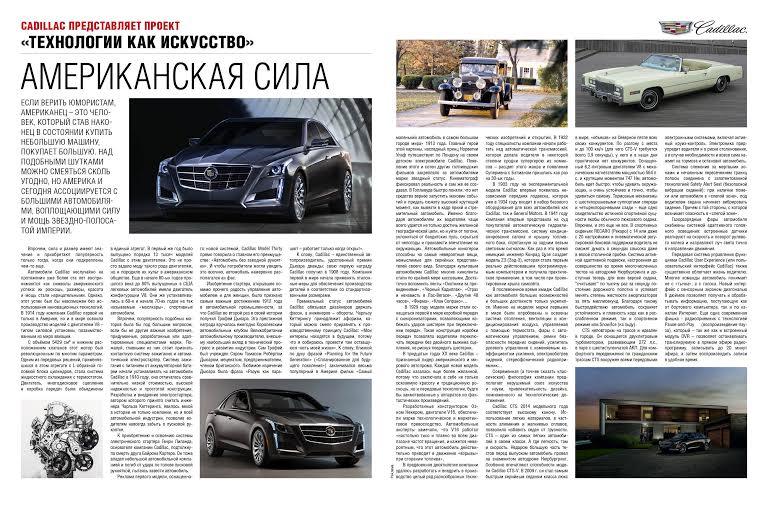 Идея проекта была разработана исходя из основной задачи кампании – представить потенциальным покупателям обновленную модель седана CTS третьего поколения. Новые автомобили Cadillac с роскошным экстерьером и интерьером разработаны с использованием самых передовых технологий, поэтому их по праву можно считать настоящими произведениями искусства. Новое поколение седана Cadillac CTS – наглядное подтверждение того, что красота и инновации неразделимы в современном мире. Симбиоз искусства и технологий в различных сферах стал тематической канвой спецпроекта с ИД «КоммерсантЪ». Контент, посвященный истории творчества и инновациям, будет размещаться во всех СМИ издательского дома с учетом особенностей каждого конкретного медиа.