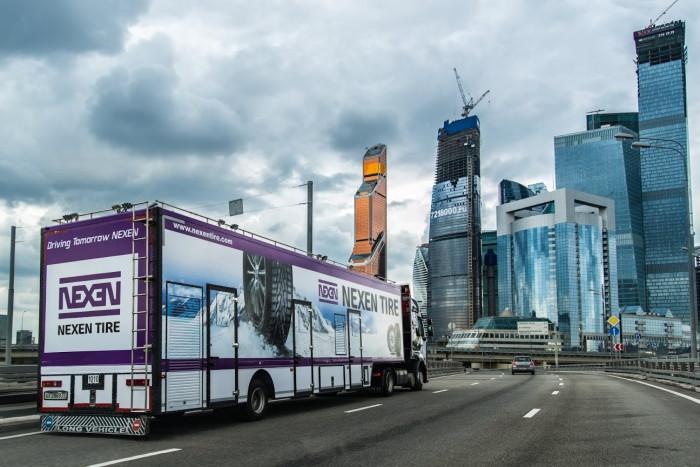 C 21 августа по 7 сентября в выставочном центре «Крокус Экспо» проходил Московский Международный автосалон 2014, в рамках которого автопроизводители демонстрировали свои новинки. При поддержке Vizeum и Posterscope было осуществлено размещение рекламы на автобусах, маршрутках, а также индивидуальном 15-метровом трейлере для Nexen Tire. Старт рекламной кампании был специально приурочен к выставке, которая стала ведущим автомобильным событием года. Автокомплексы с возможностью брендирования поверхностей площадью более 100 кв. м предоставила компания Kinodoctor.